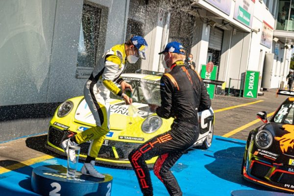 Met uitzondering van Pro’s Hartog en Schuring kunnen alle Porsche 911 GT3 Cup-rijders ook punten scoren in de Porsche Sprint Challenge Benelux. Naast twee sprintraces bestaat deze competitie bij elke ronde ook uit een lange race (55 minuten). Met drie resultaten per weekend ziet het kampioenschap van de ‘Cup Division’ er iets anders uit. De top-3 wordt slechts door drie punten van elkaar gescheiden: Nicolas Vandierendonck leidt met één punt op Michael Cool en drie punten op Jaxon Verhoeven.