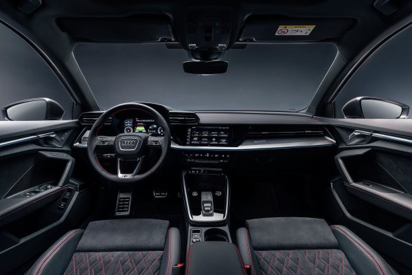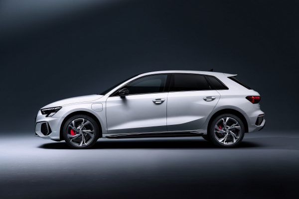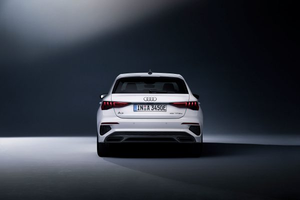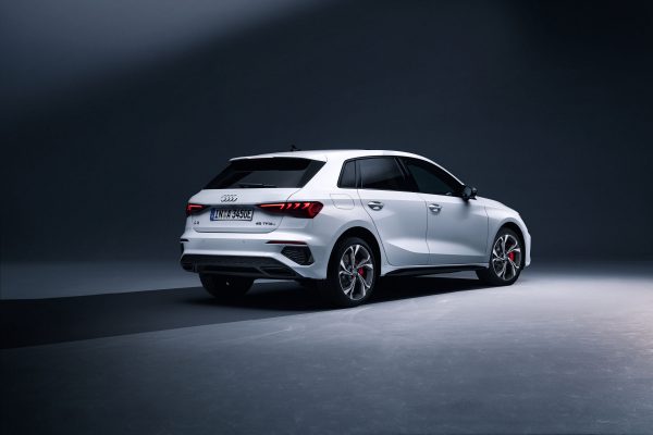 The exterior of the Audi A3 Sportback 45 TFSI e2 features an expressive design: The black styling package and a Singleframe grille with high-gloss black inlays emphasize the car’s sporty character. Upon request, Audi offers the Matrix LED headlights with non-blinding high beams and dynamic cornering lights. Their digital daytime running lights, a pixel array consisting of 15 LED segments, generate an E-shaped light signature – the symbol of the plug-in hybrid drive. The brake disks behind the 17-inch wheels are larger than those of the 40 TFSI e: They have a diameter of 340 millimeters (13.4 in) at the front and 310 millimeters (12.2 in) at the rear. All brake calipers are painted red. Unlike the 40 TFSI e, the standard equipment also includes Audi drive select, sport seats, tinted windows, two-zone automatic air conditioning, and the convenience key. The A3 Sportback 45 TFSI e is available from EUR 40,395.29 in Germany (EUR 41,440 with 19% VAT). Customers are entitled to a subsidy of EUR 6,750.