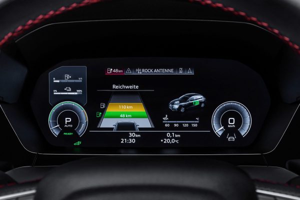 In “Auto Hybrid” mode, which is the main operating mode, the combustion engine and the electric motor divide the work intelligently. Depending on the situation and the driver’s preference, the car can coast, recuperate – in overrun mode and while braking – or boost together with the electric motor and TFSI.