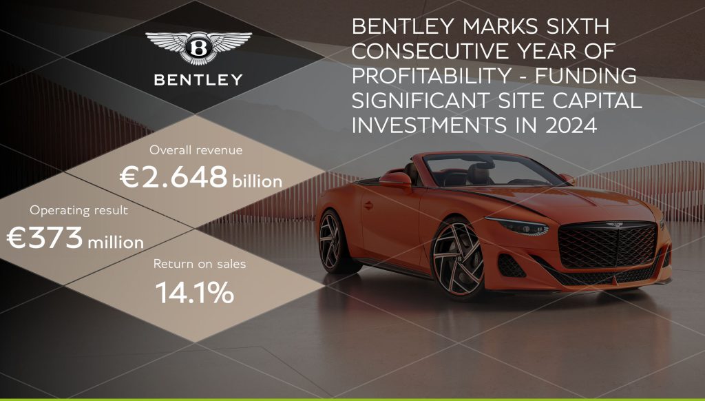 Commenting on the results, Dr. Frank-Steffen Walliser, Chairman and CEO of Bentley Motors, said: “Last year marked a milestone year in our transformation as we prepare for our electric future. We are investing at levels never seen before at Bentley, as we not only revolutionise our product cycle plan, but also transform an 85-year-old site for a new age of electrification. These are the critical foundations that will build our long-term sustainability and success. “Despite global challenges in 2024 and the run out and replacement of three of our four model lines, financial resilience measures introduced towards the end of the last decade ensured a sixth year of consistent profitability. “Looking forward to 2025, of course we continue to navigate difficult global market conditions and maintained volatile political and economic environments, however our strength of sales is strong. We have reached record levels of revenue per car, a well-balanced export strategy and a clear structure to maximise personalisation. This, added to a full year availability of our new plug-in hybrid Continental GT and Flying Spur models gives us a great deal of optimism and will have a significant, positive impact on our order bank and sales as we continue through the year.”Confirming Bentley’s long-term commitment to Crewe, work today continues on the luxury marque’s carbon neutral Pyms Lane factory and the brand’s preparations for BEV production. Construction has today started to transform the oldest building on site, A1, to become the future BEV assembly line.The new facilities aim to set a new benchmark in next generation, digital, flexible and high-value manufacturing operations. This follows the recent opening of the state-of-the-art Excellence Centre for Quality & Launch and a new Paint Shop, offering an expanded paint colour choice of near 100 individual colours to customers, nearing completion later this year. These investments consolidate Bentley’s long-term commitment to its Beyond100+ strategy and UK manufacturing for generations to come.