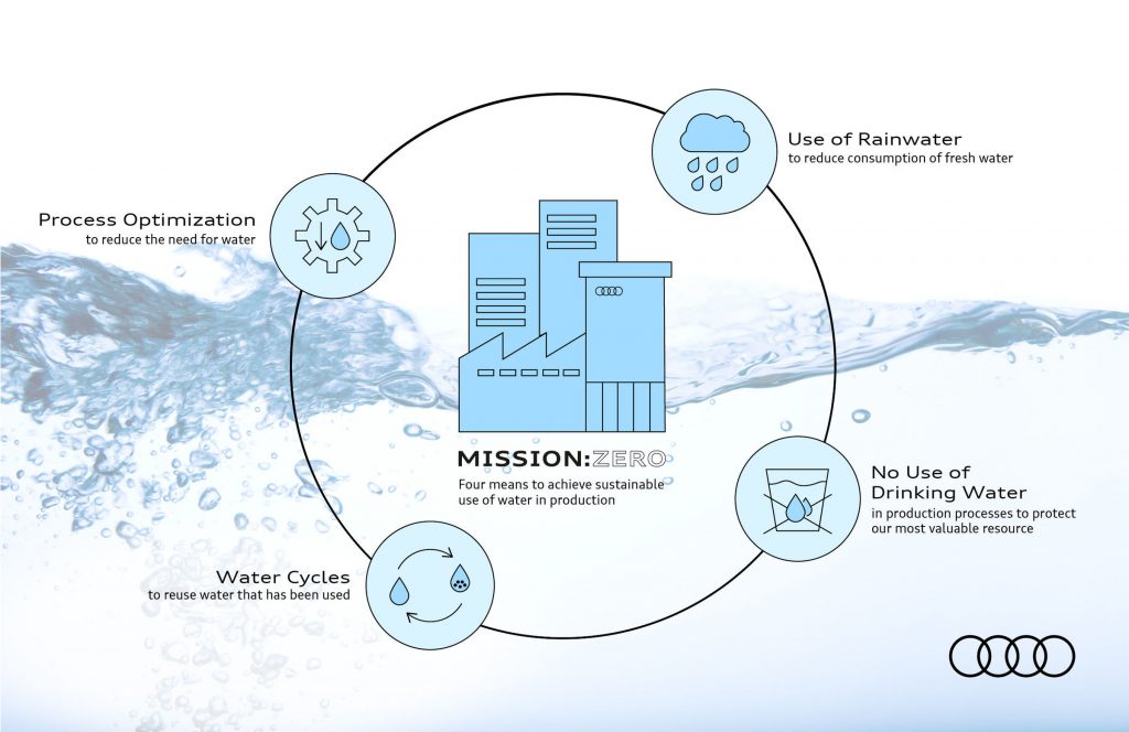 Gesloten watercyclus voor Audi-fabriek in Neckarsulm in 2025 Drinkwater besparen door gebruik van regenwater Audi México: al sinds 2018 afvalwatervrij Een zo efficiënt mogelijk gebruik