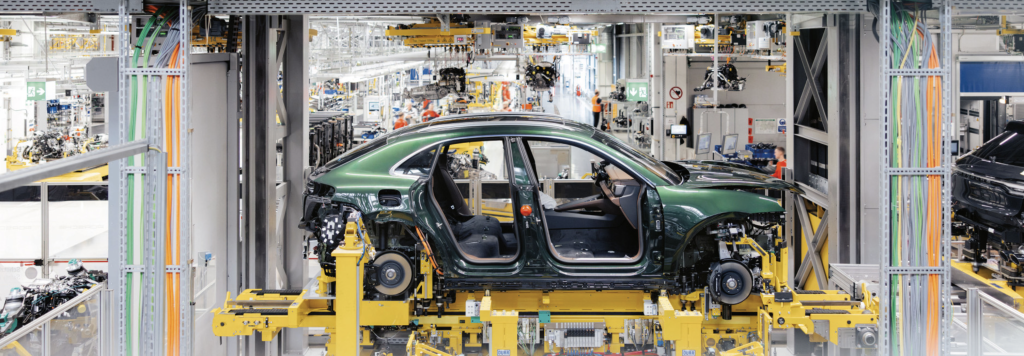 Autonome processen en innovatieve robottechnologie: om de volledig elektrische Macan in de productielijn in de Porsche fabriek in Leipzig te integreren, werd de samenvoeging van
